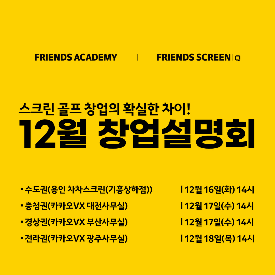 프렌즈 스크린은 골프를 사랑하는 골퍼들에게 생동감 넘치는 플레이를 선사하며, 급속히 성장하고 있습니다. 프렌즈 스크린과 함께 골퍼들을 사로잡을 파트너가 되어 주세요.